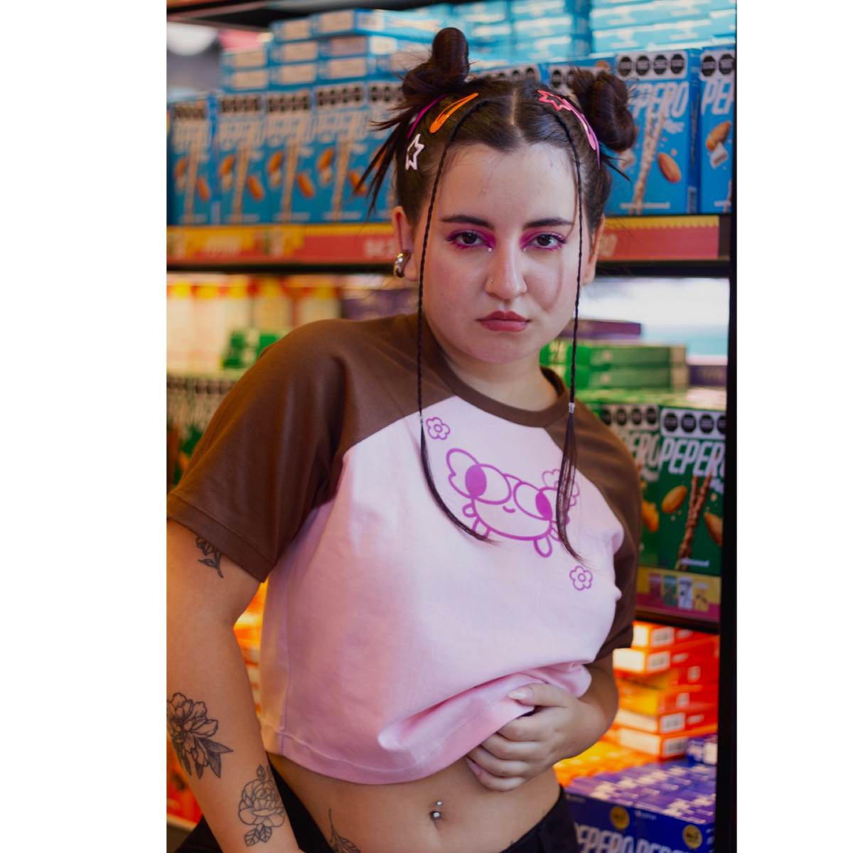 Remera baby tee de algodón con calce cómodo y mangas en contraste, ideal para looks urbanos y de uso diario.
