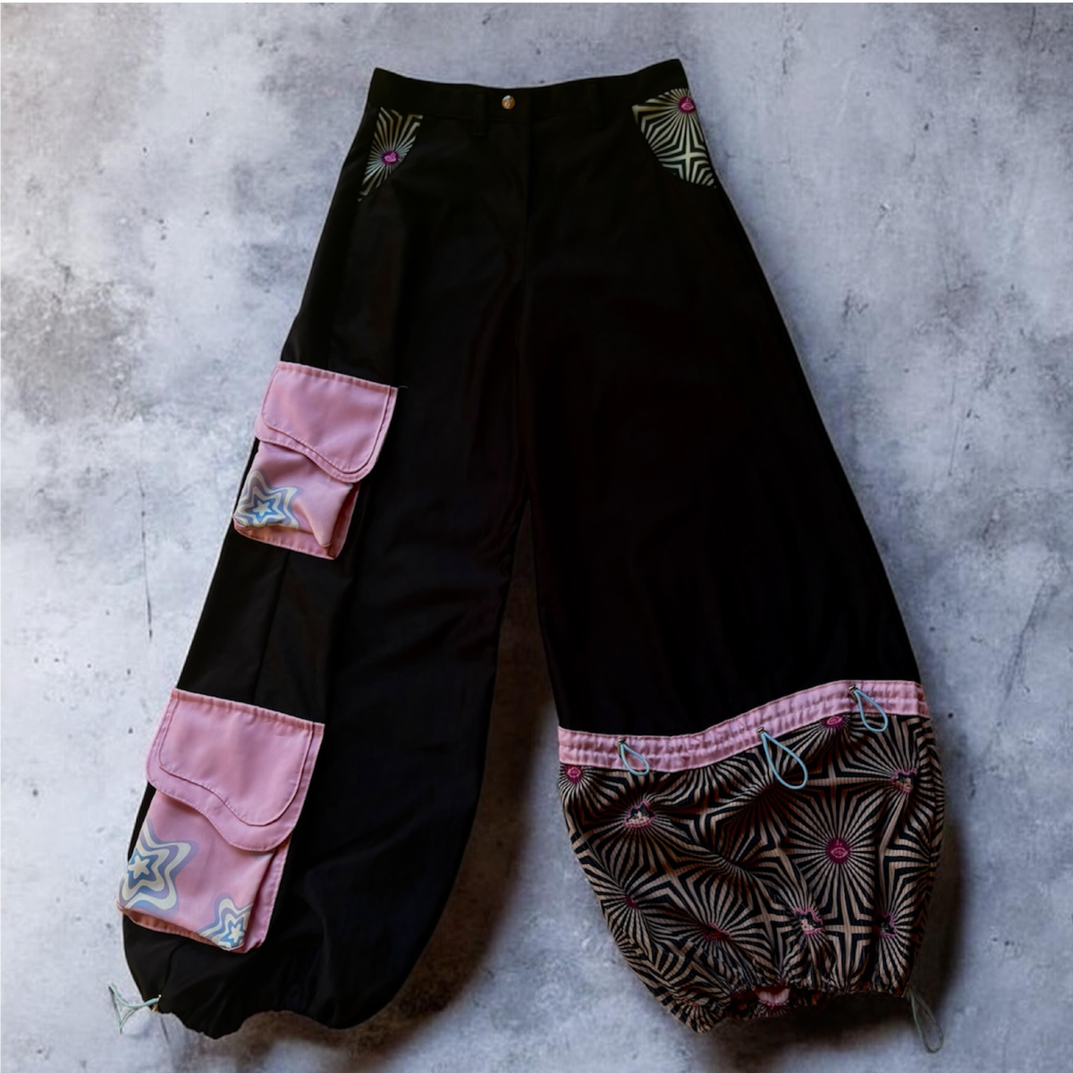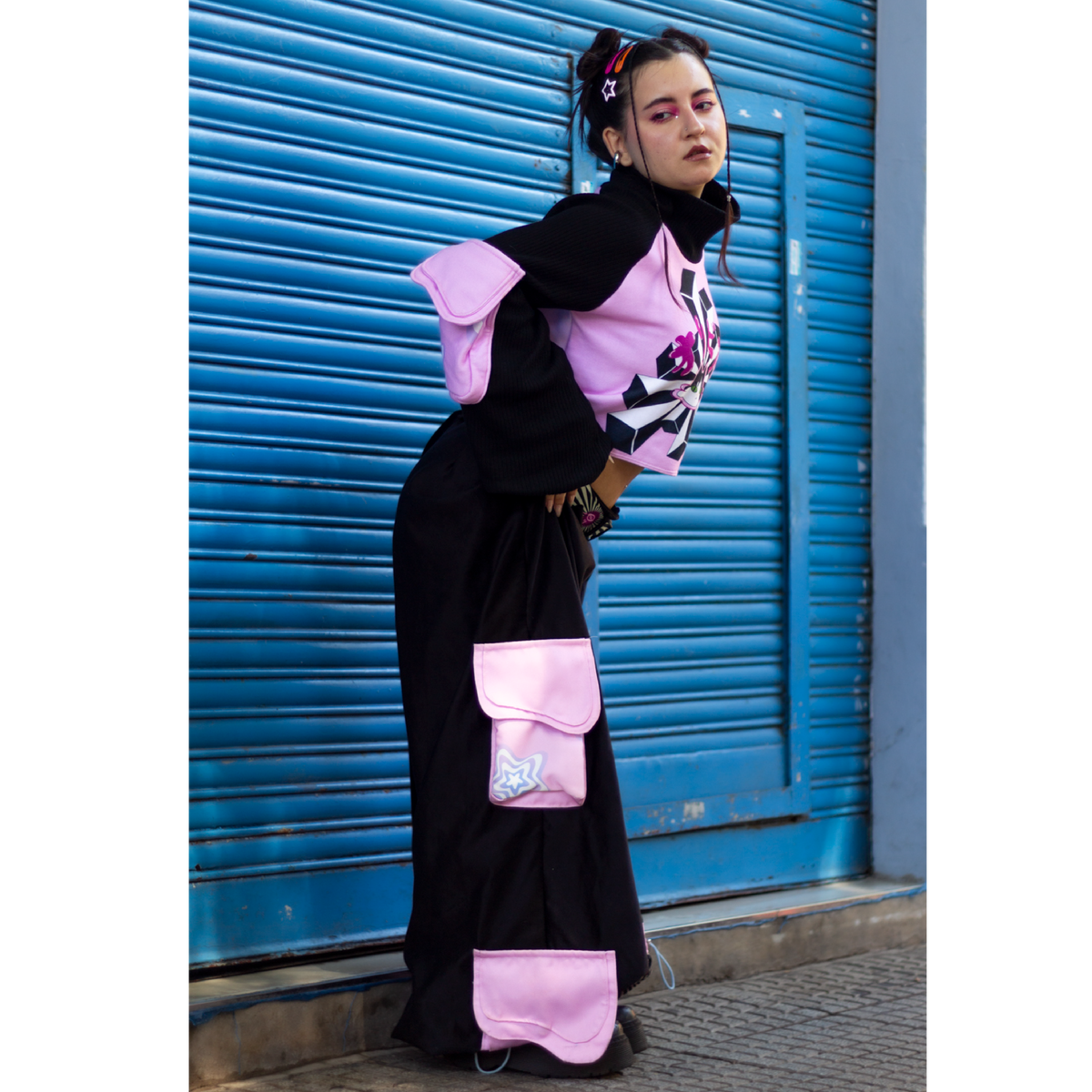 La silueta amplia genera movimiento y presencia, mientras que los recortes en corderoy y las zonas sublimadas suman contraste y textura. Los bolsillos cargo aportan carácter y funcionalidad, y las tancas en el ruedo permiten regular la amplitud para llevarlo más suelto o más ajustado, según el look. Incluye un cinto sublimado regulable que permite adaptar el pantalón al cuerpo para un mejor calce.