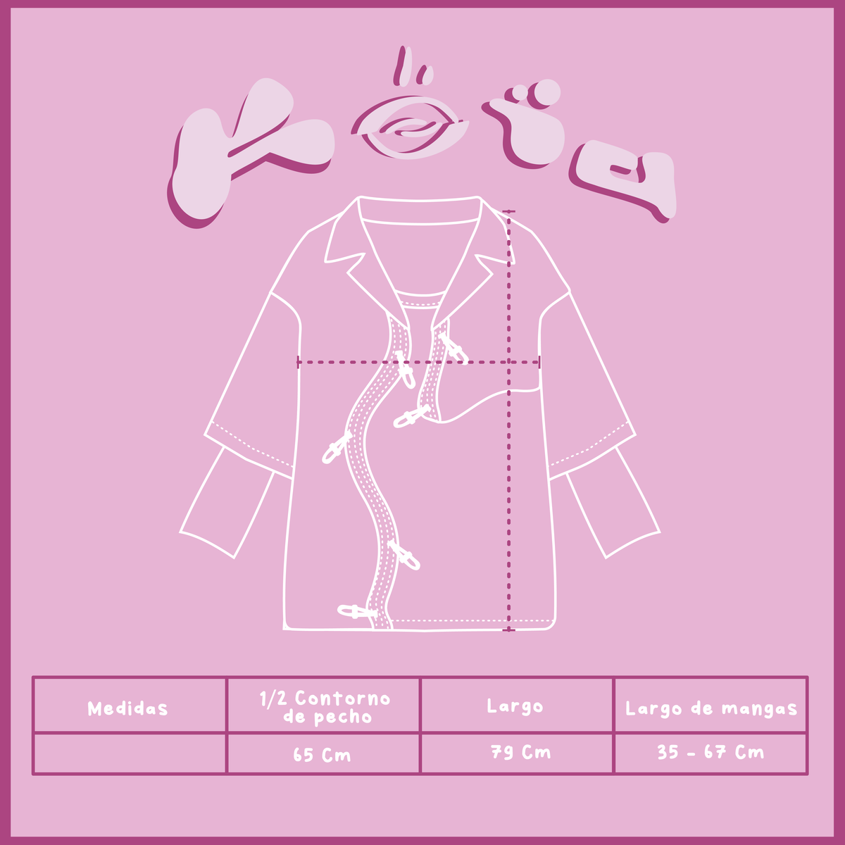 La base liviana aporta caída y movimiento, mientras la camisa superpuesta estructura la silueta. La doble manga integrada genera contraste y profundidad.