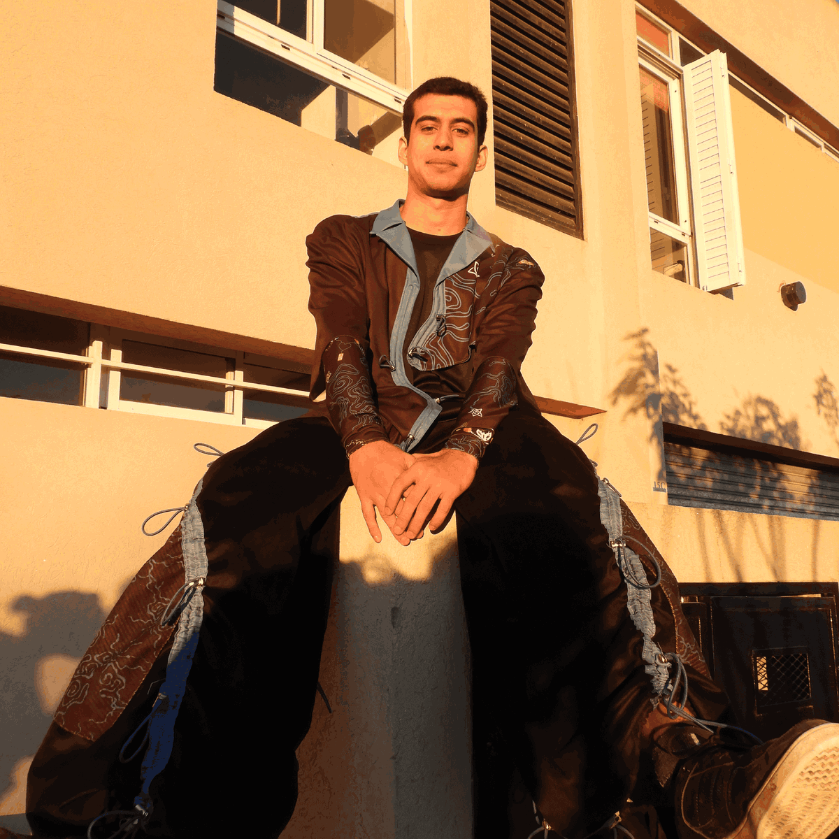 El recorrido frontal ondulado con tancas y elásticos reinterpreta la silueta de una corbata, rompiendo la estructura clásica y llevándola a un lenguaje más urbano.