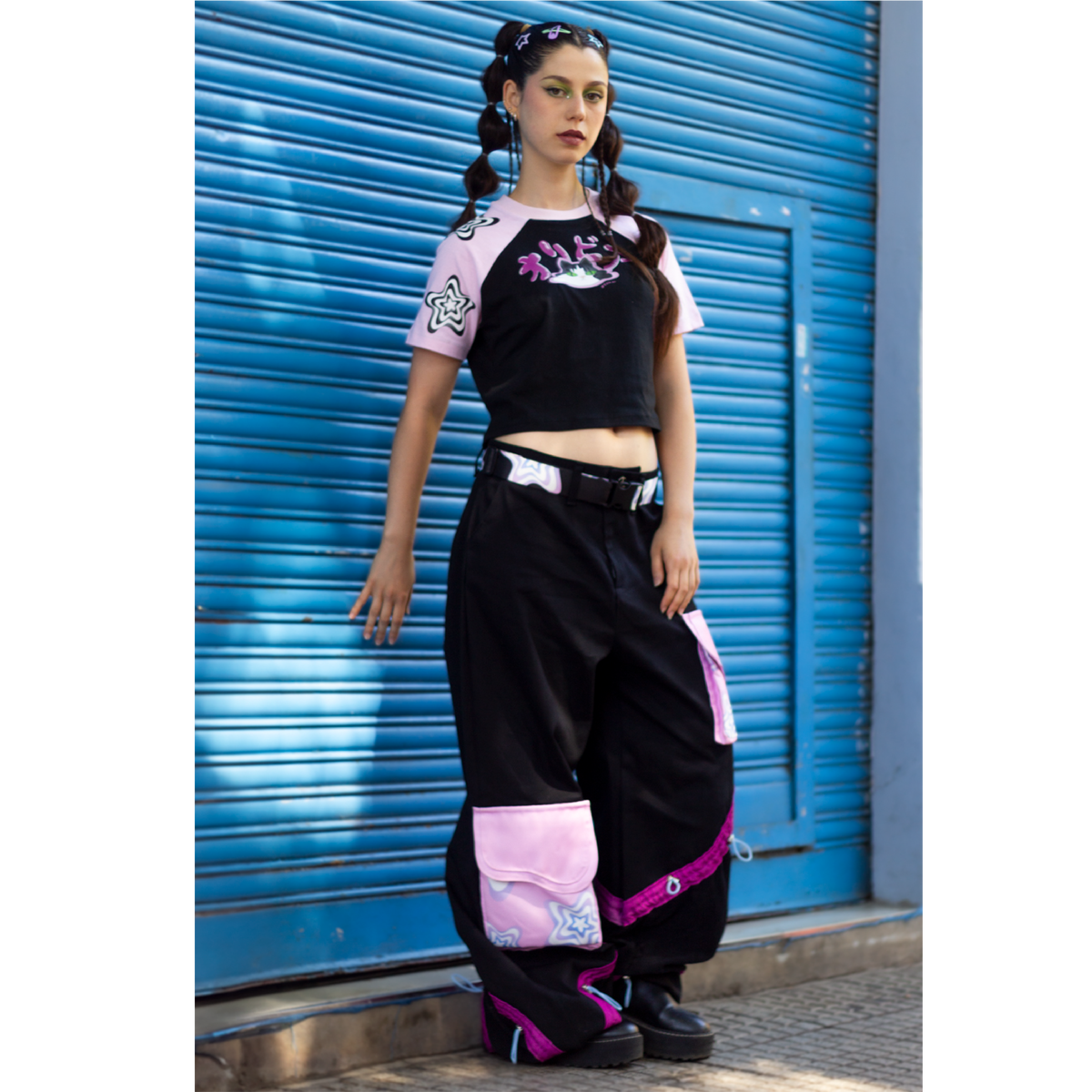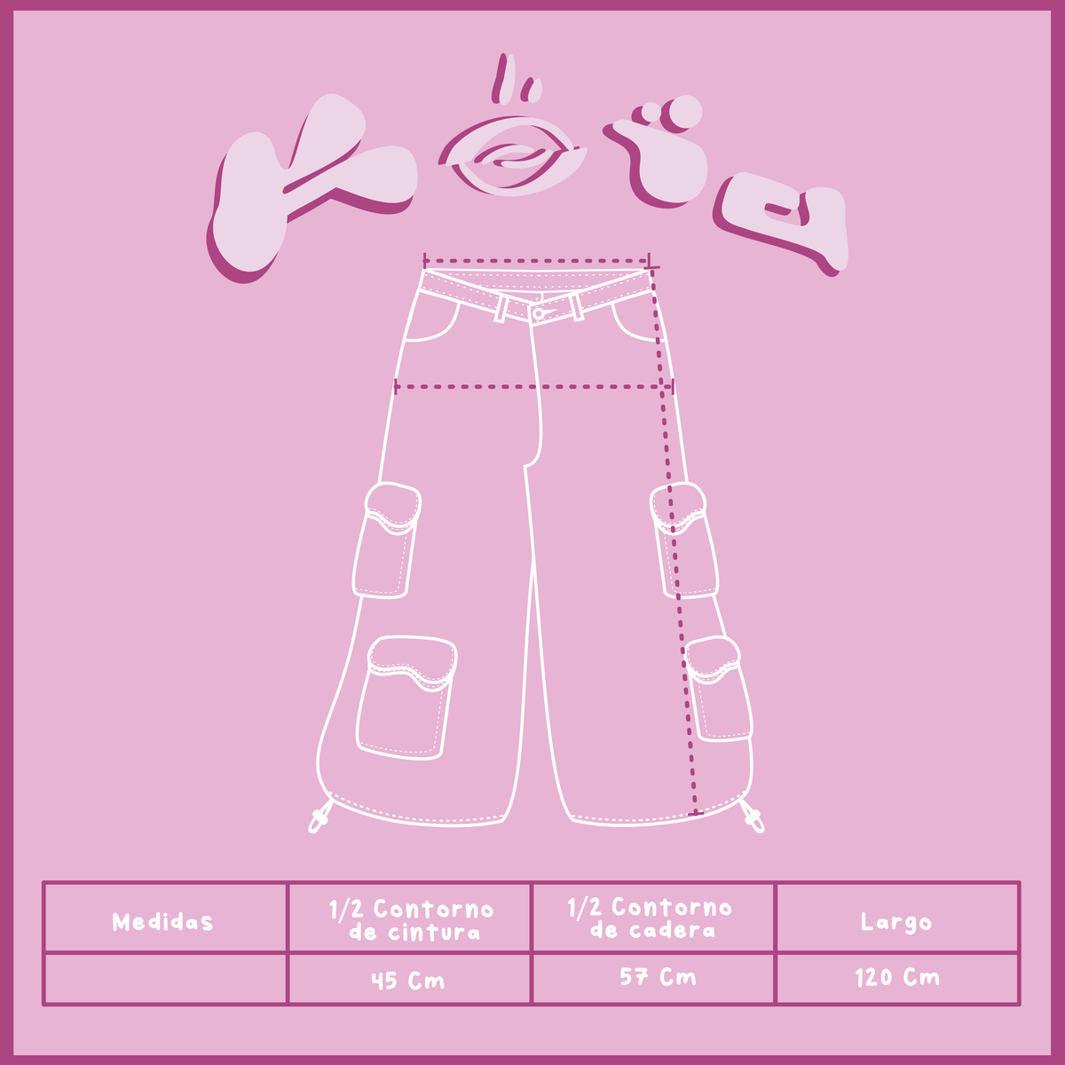 La silueta amplia aporta movimiento y presencia, mientras que los bolsillos cargo en contraste y los recortes con textura suman un juego visual que lo hace protagonista. Los ajustes en el ruedo permiten regular la caída y adaptarlo a tu estilo. Incluye un cinto sublimado regulable que completa la estética y potencia el diseño.