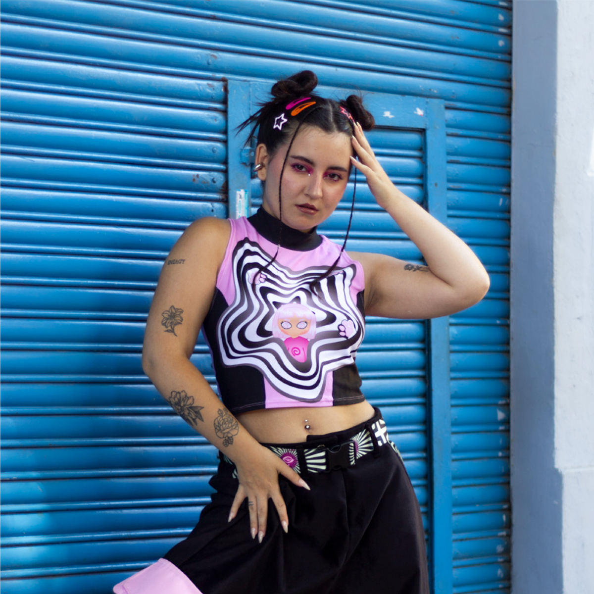 Top de lycra con calce al cuerpo y textura suave, pensado para looks urbanos, festivales y outfits que destaquen.